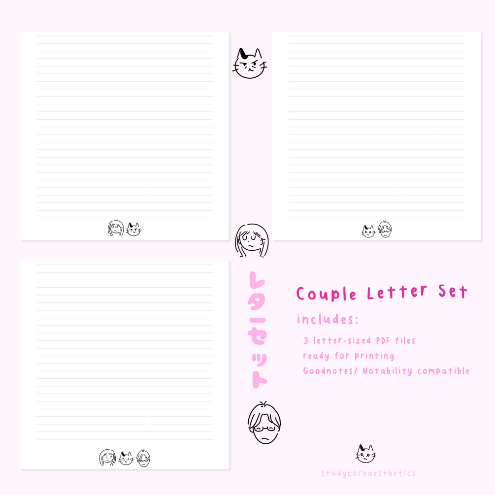 Minimalistic Couple Letter Set- Digital and Printable Stationery [Letter-sized (8x10) PDF files]